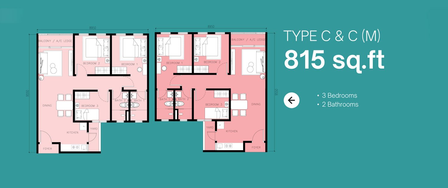 Up To 3 Bedrooms & 2 Bathrooms | Up to 815 sq.ft